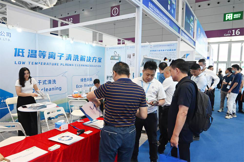 本次展會,針對半導體封裝行業我司主要帶來了我們最新的等離子清洗設備,及等離子去膠機。封裝工藝直接影響引線框架芯片產品的成品率,而在整個封裝工藝環節中出現問題的最大來源就是芯片與引線框架上的顆粒污染物、氧化物及環氧樹脂等污染物。針對這些不同污染物出現環節的不同在不同的工序前可增加不同的等離子清洗工藝,其應用一般分布在點膠前、引線鍵合前、塑封前等。